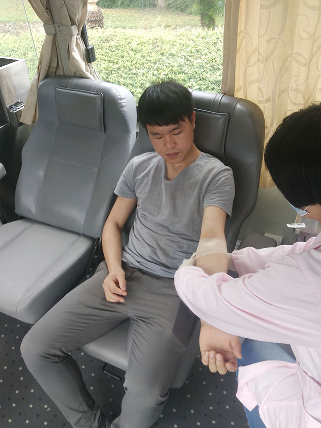 “上午11时左右,我正在国际商贸城谈生意,得知刘女士的病情后,当即中断谈判,火速赶到义乌中心血站献血。”王勇是义乌万事达外贸公司负责人,他赶到义乌中心血站时,发现已有好多老乡在现场等候献血。“大家纷纷伸出臂膀,有序地让医生抽血,场面很感人,在场的湖北老乡个个是好样的。”