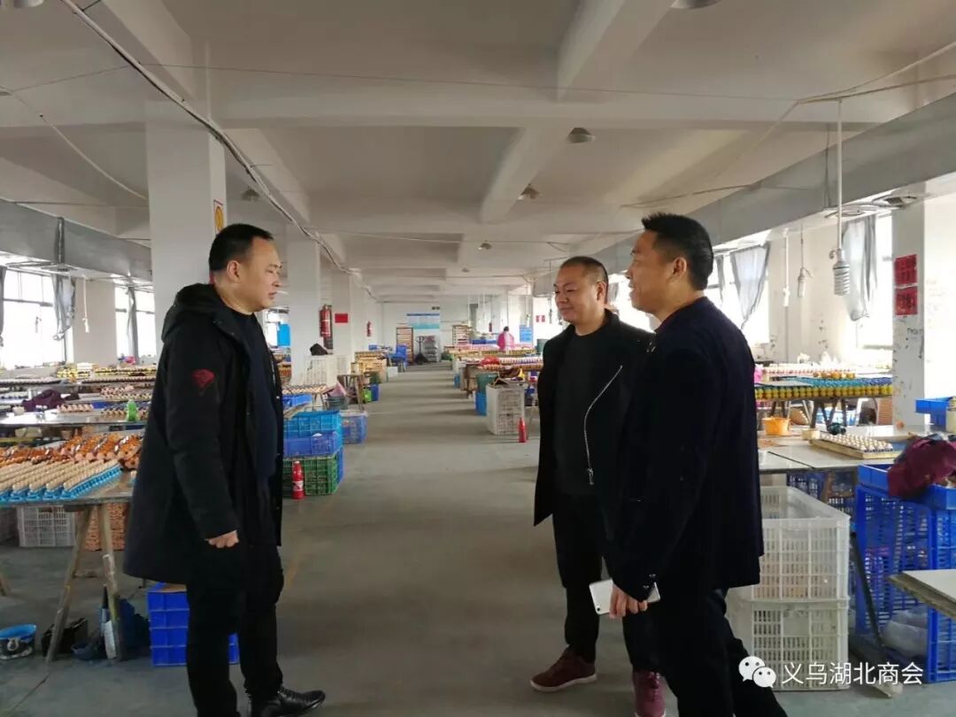 2018年1月16日上午,义乌湖北商会监事长杜意民,秘书长郭蓉,副会长胡育林,会员胡国斌走访商会会员企业胡谷林胡总企业:金华暖朵工艺品有限公司,胡总的产品销往世界各地,供不应求,胡总介绍说,他之所以订单不断,产值年年递增,归功于长期坚持严把质量关,从原材料到生产过程,都有专业技术人员督促跟踪,质量是企业的生命,在胡总这里得到最好的体现。